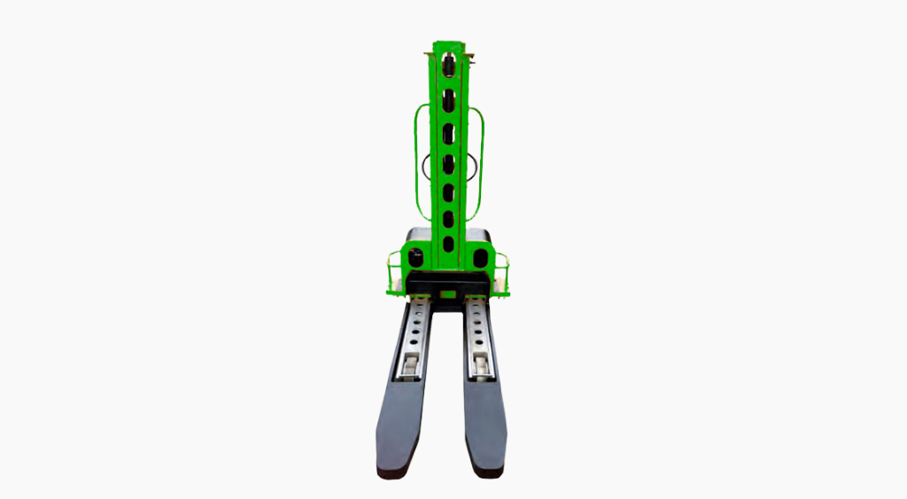 - Sistema de mástil tipo reach, que extiende las horquillas hacia adelante para alcanzar pallets sin mover completamente el equipo.